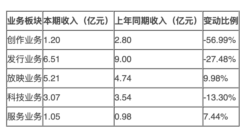 《逐日经济新闻》记者梳剃头现,在公司五伟业务板块中,上半年放映业务与处管事求兑现同比增长,成为功绩中的“褂讪器”;但创功课务与刊行业务阐述欠安,收入永诀同比着落56.99%和27.48%,成为负担举座营收的主要身分。